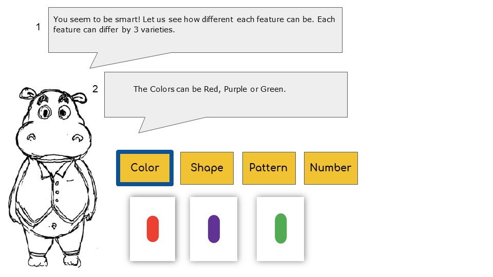Therefore, prototyped some UI elements that we could use in our project. Here is an example of Ako teaching to identify Set: