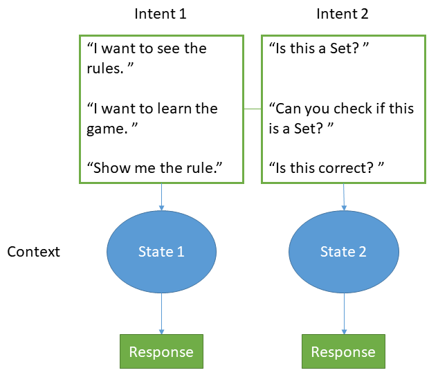 DialogFlow also maintains states through Contexts. Contexts are attached to Intents and