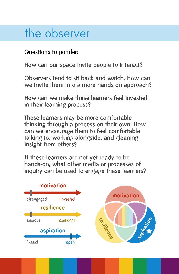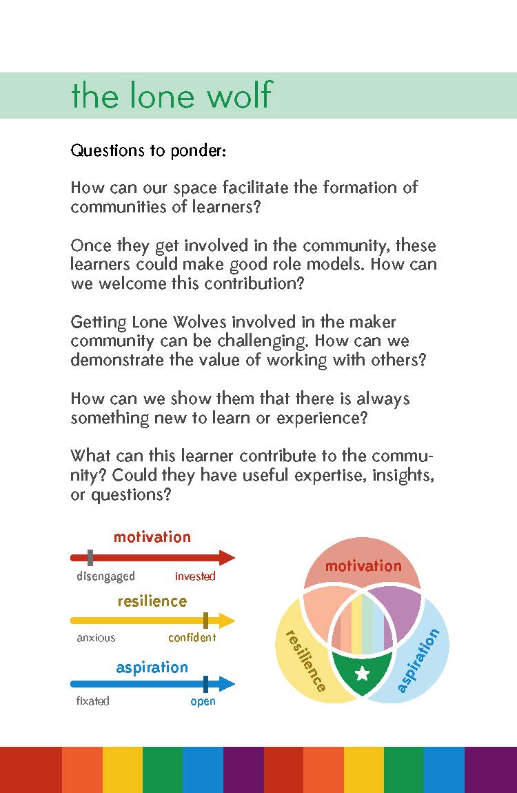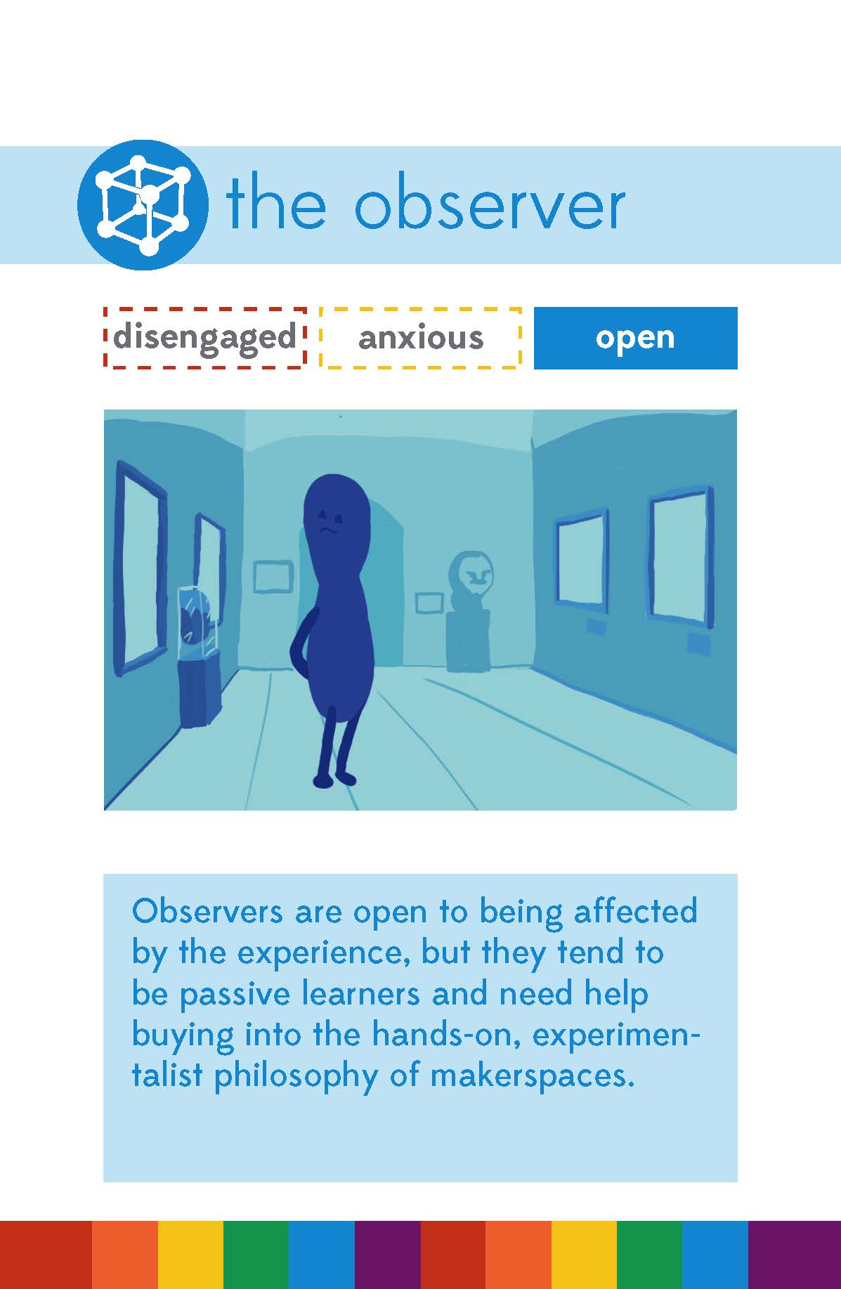 It is also important to note that one person can easily model each of these archetypes. Their behaviors can be dependent on how their day is going, and can shift depending on how they are responding to design and facilitation of the makerspace.