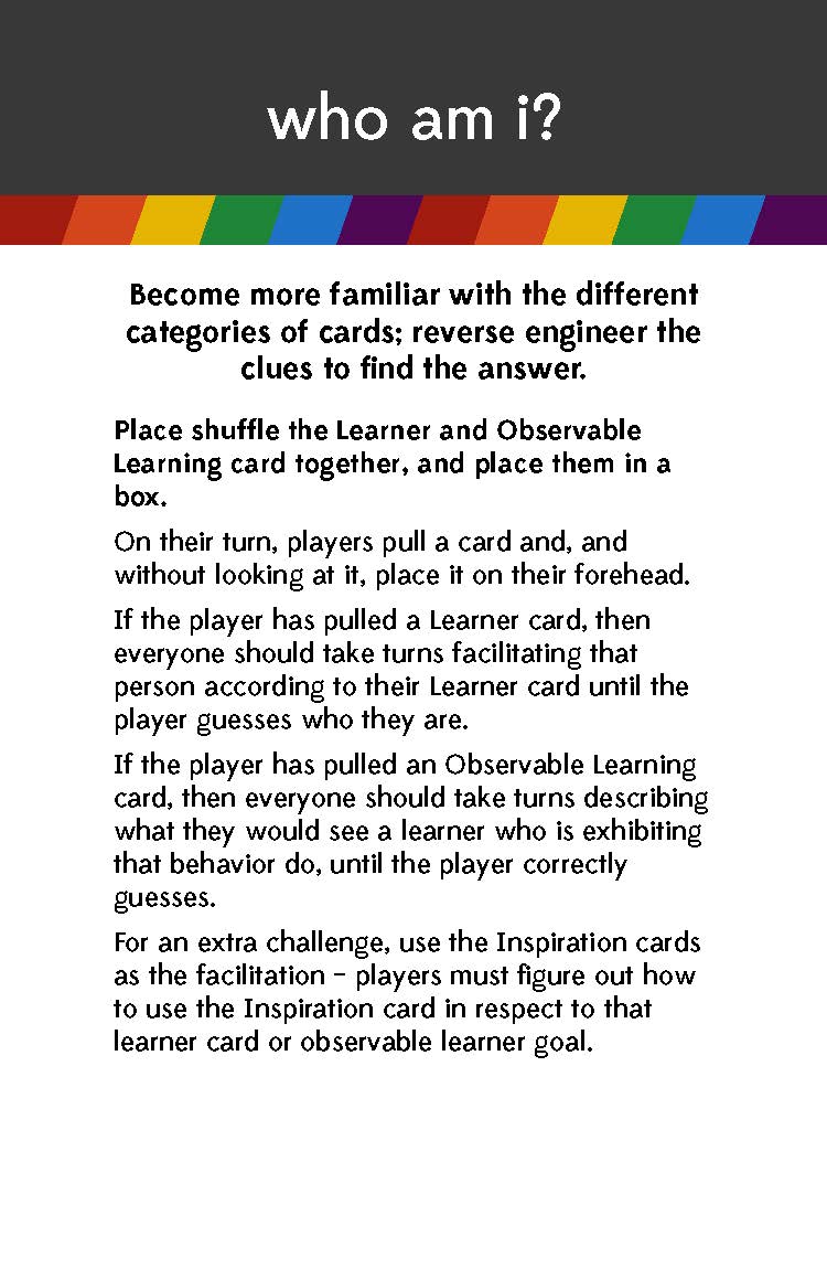 Users are welcome to use these cards any way they like. Below we have provided suggestions on games and activities that we have seen work exceptionally well with brainstorming family unit facilitation strategies.