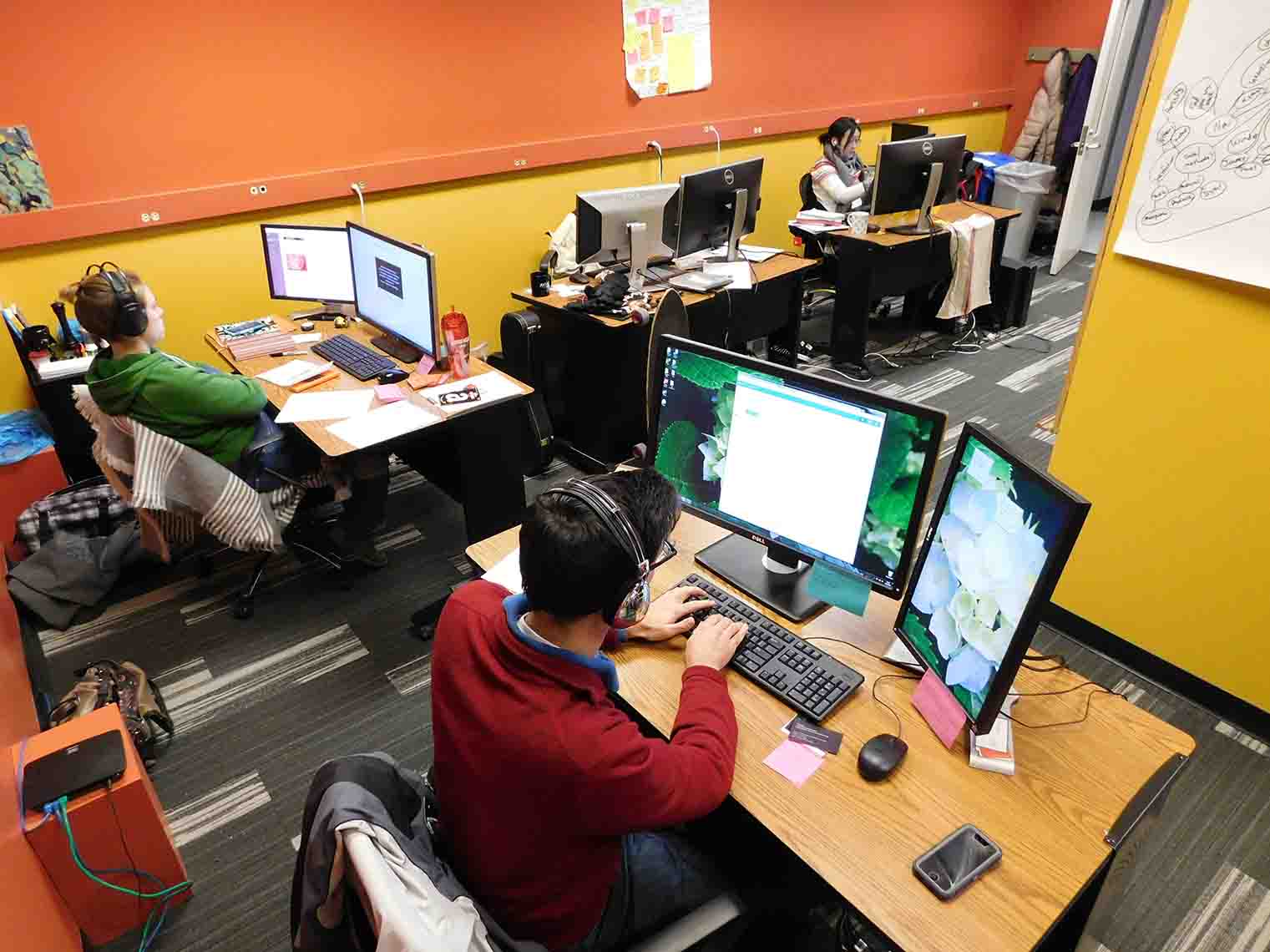 The person behind the camera snapping photos, taking video for the vlog, and editing those materials throughout the semester was team member Aly Soto. She organized, planned, and set up shoots for promos and always had her camera on hand for all those impromptu moments. Aiding her in this process was Ashley Koo who was always ready to take over the camera at a moment’s notice. Tony was set up as the “interviewer” for days when we were shooting film of the faculty. Dave Palumbo, in addition to creating animated info graphics, would occasionally consult on shot set-ups and lighting, while Kirsten used her sound designer skills to set up the sound systems and edit audio.