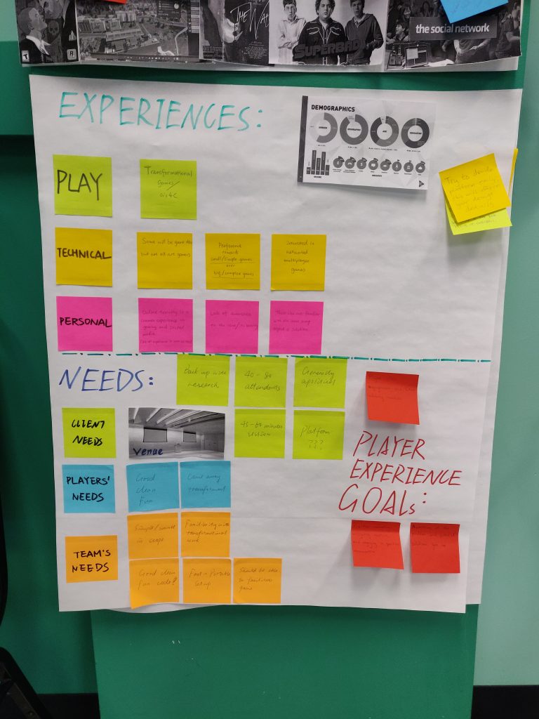 We had a meeting with Dave to prime us on the Transformational Framework – a set of guidelines for pre-production when working on transformational experiences. The next day we attended the Transformational Framework workshop with Sabrina Culyba, the author of the framework. In the workshop we got more in-depth about the different concepts and began tentatively trying to answer some of the questions it poses, such as what our high level purpose is, or our audience’s initial (pre-transformed) state.