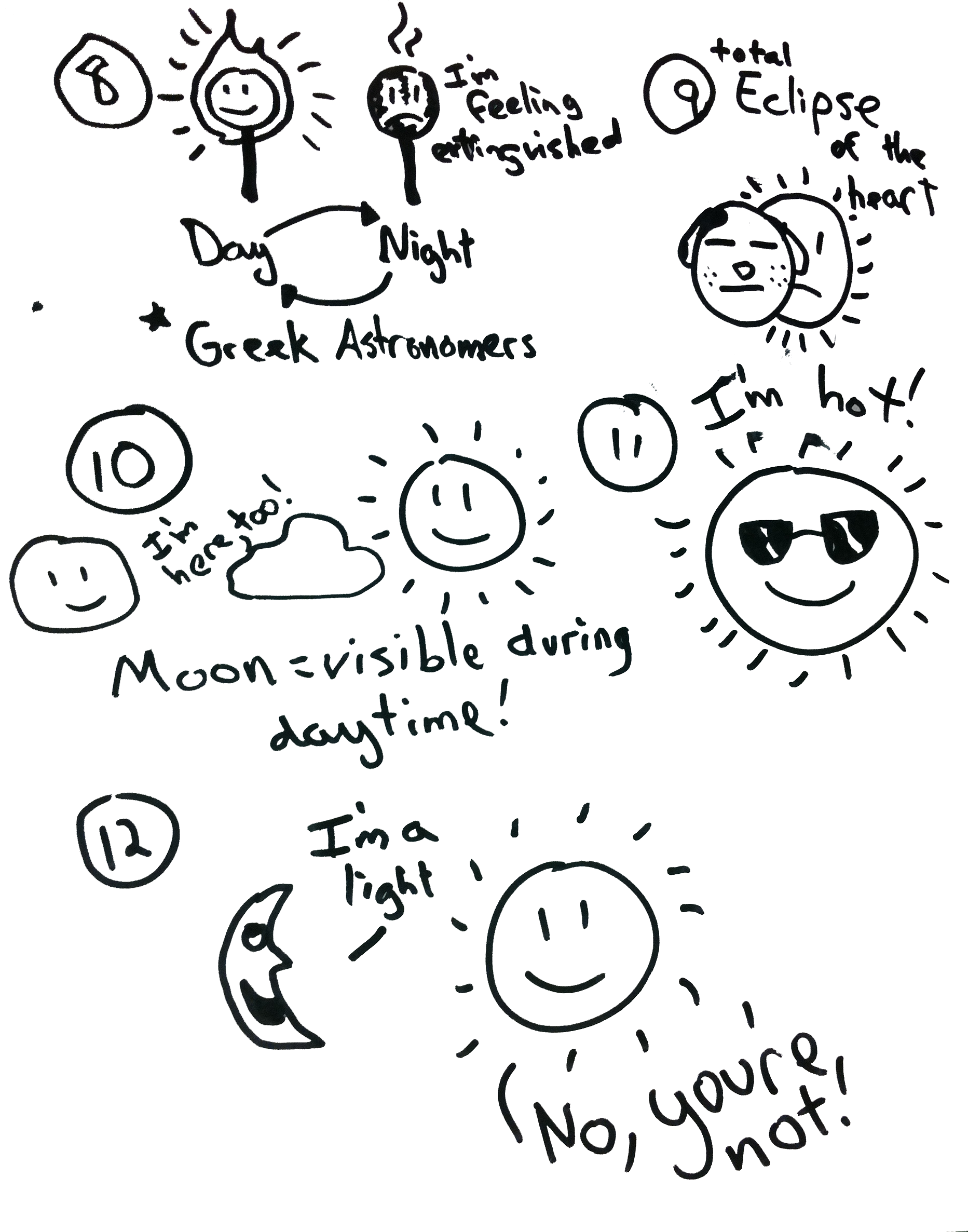 - Define and identify sunrise, day, noon, sunset, and night as the Earth spins.